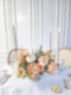 A small arrangement in gold compote for guest table.